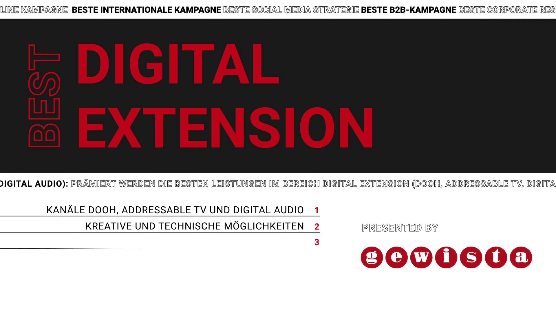 2. Innovation: Weiterentwicklung der digitalen Branche durch Challenging. Wir machen Lust auf digitale Werbung und wirtschaftliche Förderung und inspirieren, um die Innovationskraft der digitalen Kommunikationswirtschaft zu zeigen, zu fördern und zu vernetzen.